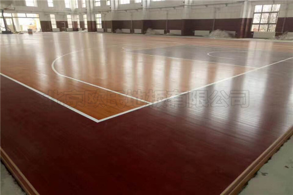 北京歐氏地板有限近期承接山東省臨沂林澗鎮(zhèn)72313部隊(duì)籃球館木地板鋪設(shè)工程,該項(xiàng)目負(fù)責(zé)人選擇的是單層龍骨結(jié)構(gòu)楓木材質(zhì)實(shí)木運(yùn)動(dòng)地板,鋪設(shè)面積548平米,現(xiàn)已鋪設(shè)完成結(jié)束驗(yàn)收,該項(xiàng)目運(yùn)動(dòng)木地板顏色為定制顏色,采用楓木加色來進(jìn)行整體鋪裝.