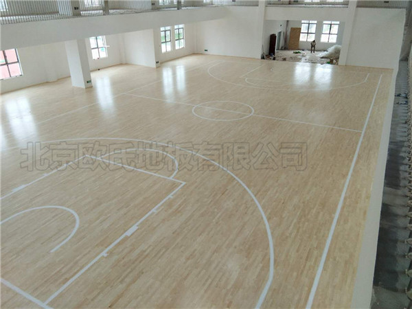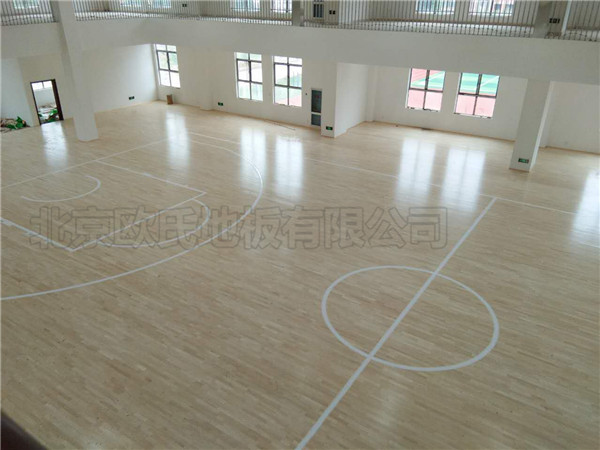 北京歐氏地板有限公司近期承接湖北天門杭州華泰小學(xué)籃球木地板鋪設(shè)工程,該項目負責人選擇的是雙層龍骨結(jié)構(gòu)楓木一級籃球木地板,鋪設(shè)面積926平米,現(xiàn)已鋪設(shè)完成結(jié)束驗收.雙龍骨運動木地板系統(tǒng)在上下龍骨的交點之間加一個彈性墊,有效地解決了龍骨直接接觸容易發(fā)生響聲的問題同時增強了運動性能,實木材料作主副龍骨(雙層龍骨).作為***先進的一種全縱向?qū)盈B式抗變形運動木地板結(jié)構(gòu),它大大提高了木方的抗彎抗剪性能,更大大提高了木方的彈性模量.非常適用于運動、排球等專業(yè)比賽運動場館建設(shè).下圖為實際拍攝效果,未經(jīng)過任何處理: