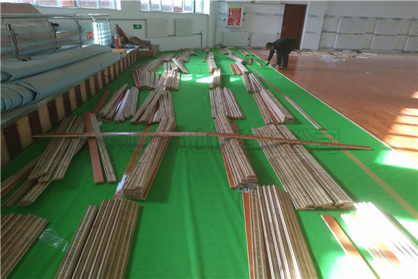北京歐氏地板有限公司承接新疆庫(kù)爾勒國(guó)稅局籃球木地板鋪設(shè)工程,該項(xiàng)目負(fù)責(zé)人選擇的是雙層龍骨結(jié)構(gòu)楓樺木二級(jí)運(yùn)動(dòng)木地板,鋪設(shè)面積686平米,現(xiàn)已鋪設(shè)完成結(jié)束驗(yàn)收.