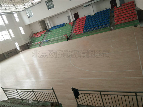 北京歐氏地板有限公司承接延安吳起高中籃球木地板鋪設(shè)工程,該項(xiàng)目負(fù)責(zé)人選擇的是主輔龍骨結(jié)構(gòu),鋪設(shè)面積703平米,現(xiàn)已鋪設(shè)完成結(jié)束驗(yàn)收.